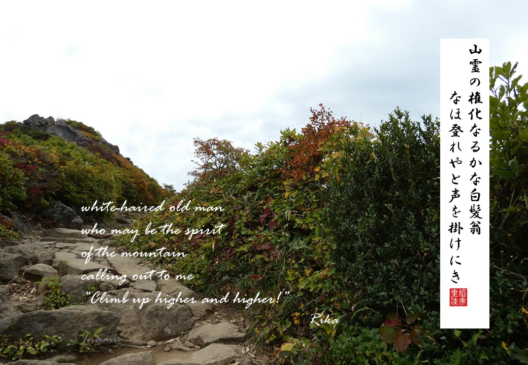 山霊の権化なるかな白髪翁なほ登れやと声を掛けにき