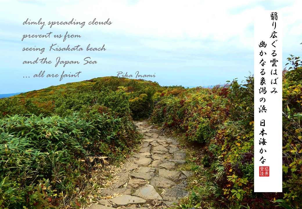 Unfortunately, it was not a clear day, but slightly cloudy. At Hokodate, there is a trailhead to the summit of Mt. Chokai. Although I was not equipped with mountaineering, I decided to go a little further from the trailhead. As it popped into my head, I left my family behind and stepped in alone. I composed seven pieces of tanka based on the scenery and the encounter along the way.