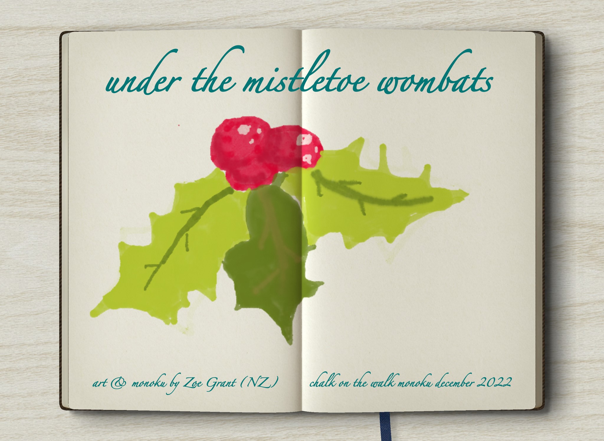 — Zoe Grant (monoku/art, NZ), Chalk on the Walk Monoku December 2022