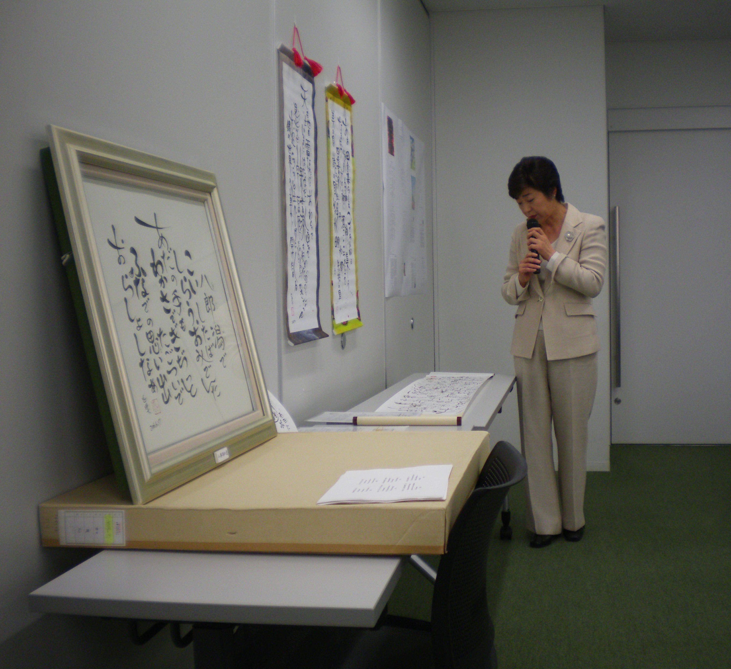 愛乃心葉 (Aino Shinyō), who is KOTODAMA poetry artist, presented her 5 congratulatory 5-7-5 poems and “Kotodama calligraphic paintings.”
