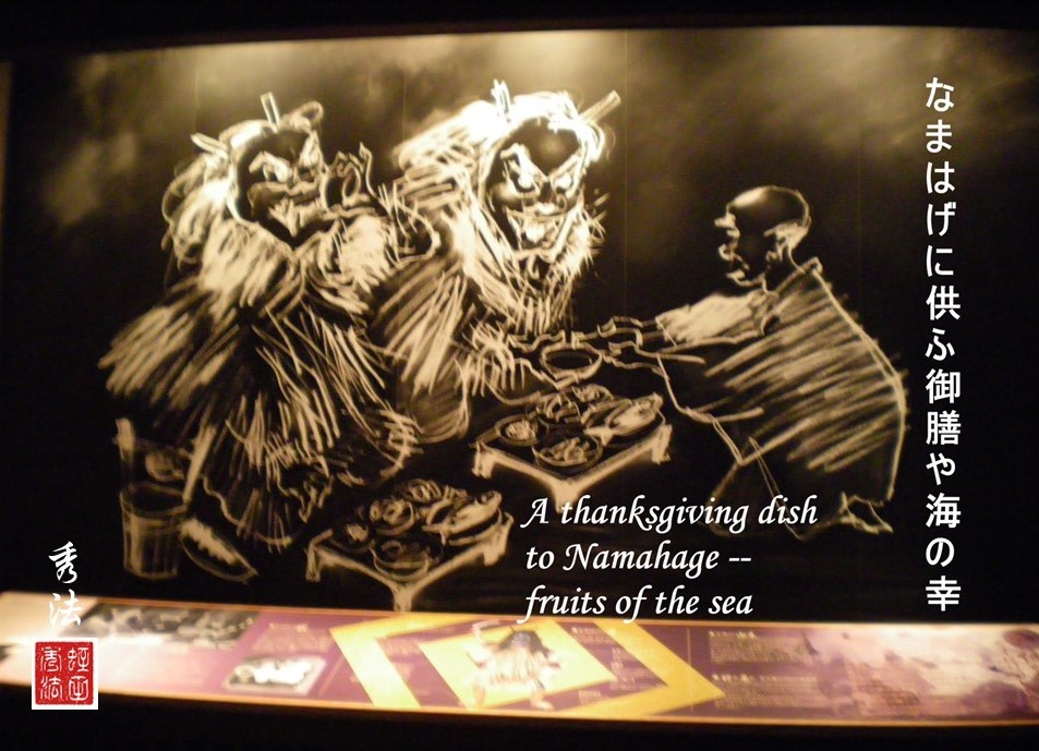 A group of Namahage-masked men, disguised as ogres, visit each house in the village, where they are courteously welcomed by the head of the house in formal dress.