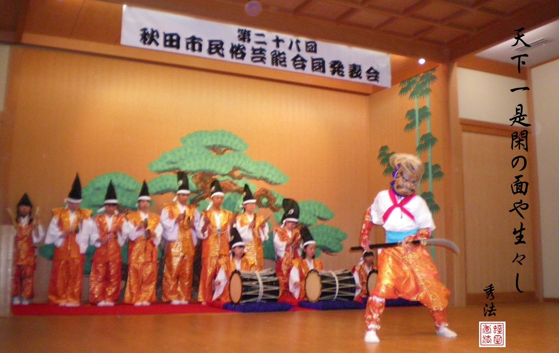 「山谷番楽」‘Yamaya Bangaku’ is a unique sacred music and dancing performed at the festival of 「生面神社」‘Seimen-jinja Shrine’ located at 「秋田市太平山谷野田」‘Noda, Yamaya, Taihei, Akita City.’