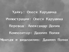 Bот вторая ссылка на видео ролик, хайку и картины – Карушина Олеся(я), перевод на английский язык – Александр Долин, автор музыки и монтаж – Даниил По’ляк: https://disk.yandex.ru/i/8zzwVJXJS2guNg