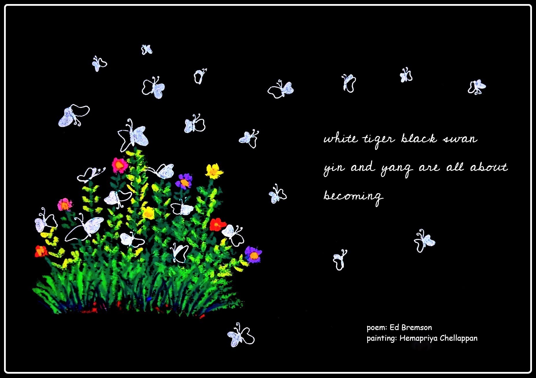 The Yin/Yang haiga, collaboration with Hemapriya Chellappan artist, Ed Bremson poet, published 2022 in Failed Haiku. The dogwood haiga previously unpublished.