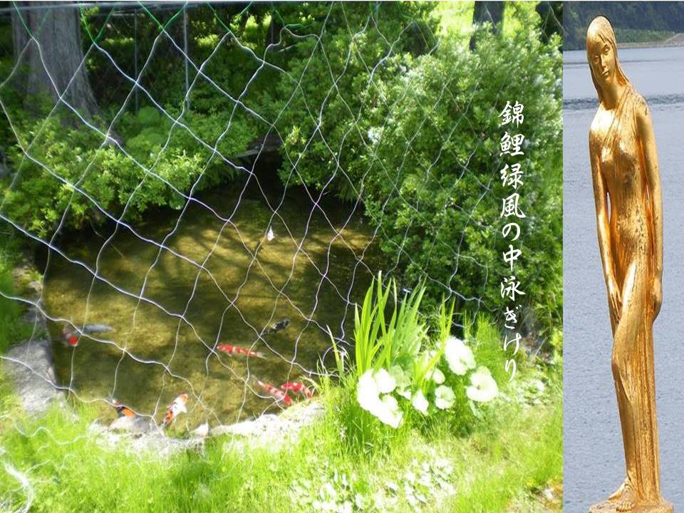 錦鯉緑風の中泳ぎけり