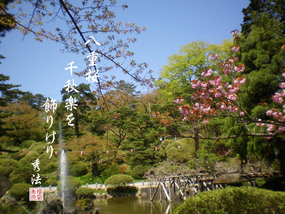 (yaezakura senshū-raku o kazari keri)