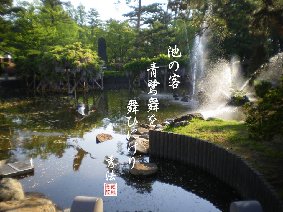 (ike no kyaku aosagi mai o maini keri)