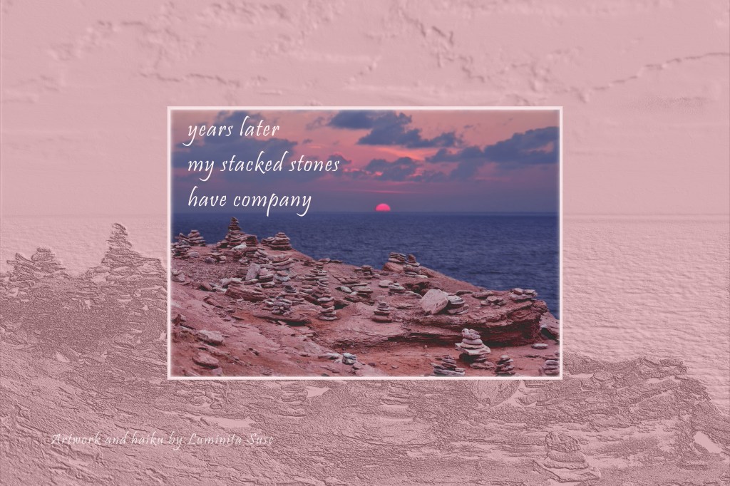 I would like to submit the following 10 haiku / haiga (see the attached image files) for the Haiku World Series 2022, theme: Earth. They are my original haiku and artworks using photos that I took myself. All haiku and haiga are unpublished except for the last haiku in the list below, which will appear this year in an anthology, details provided below.