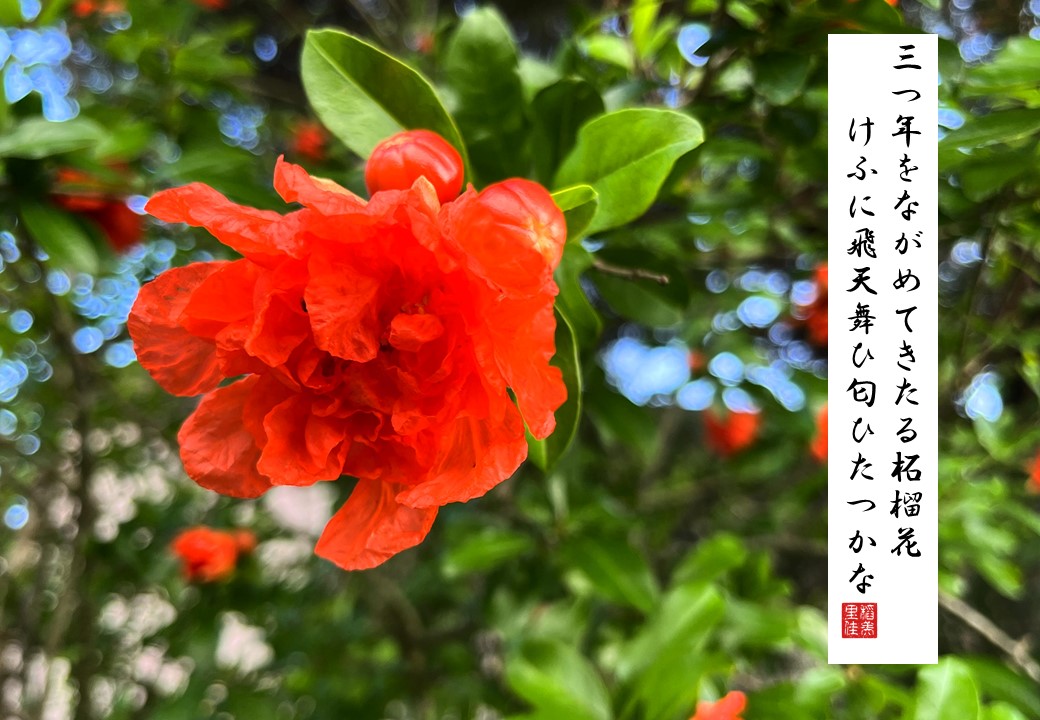 朝の散歩時に見た柘榴の花へ2首 1, 2―