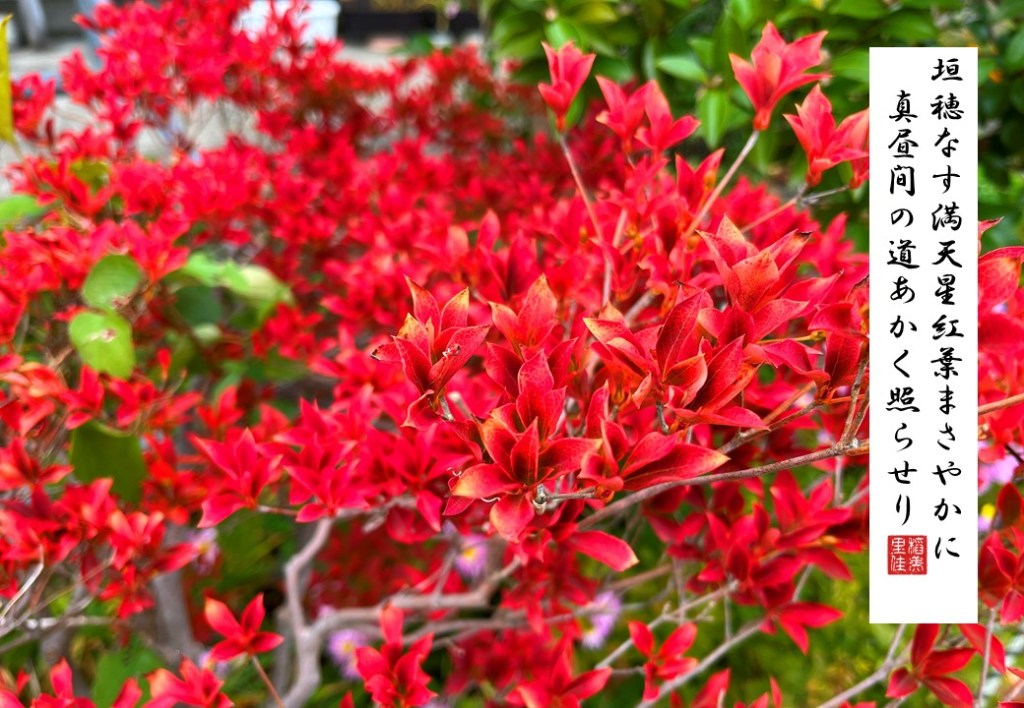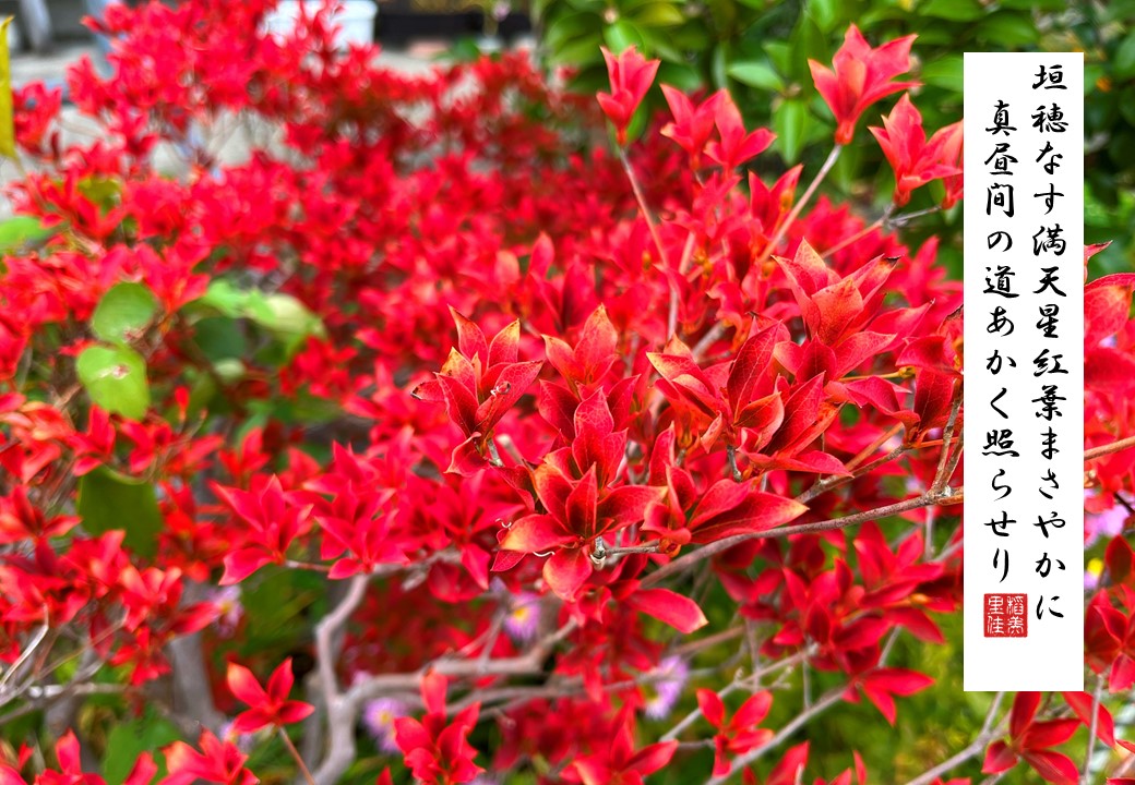 垣穂なす満天星紅葉(どうだんもみじ)まさやかに真昼間の道あかく照らせり