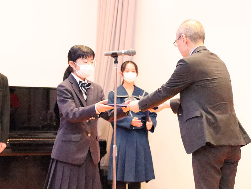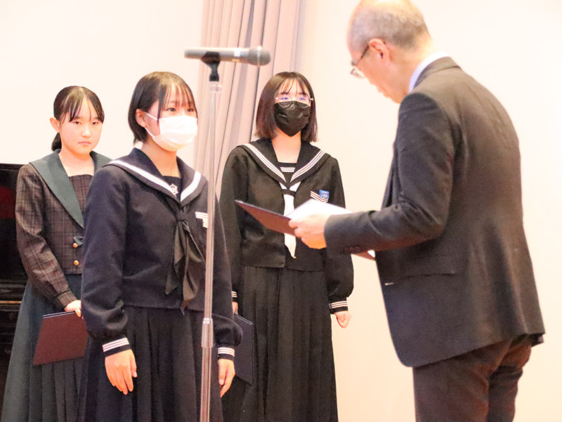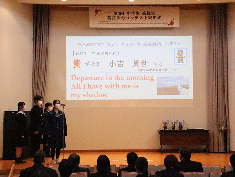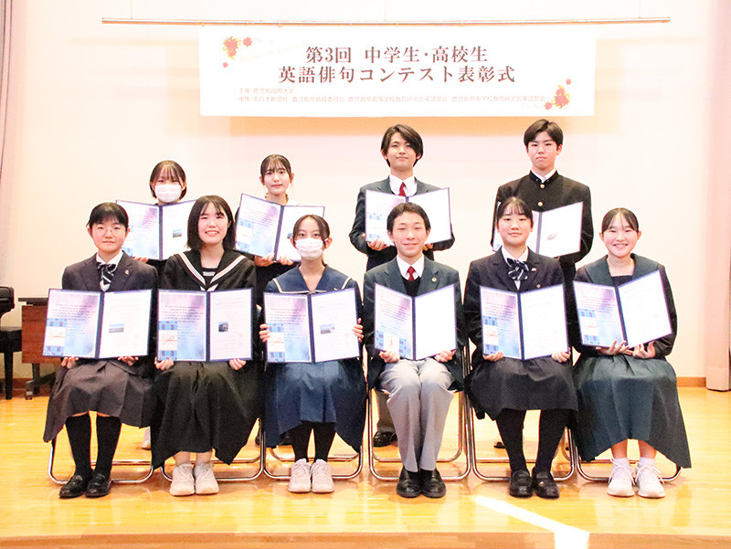 鹿児島県内の中学生や高校生を対象にした第3回「中学生・高校生英語俳句コンテスト」の表彰式を、12月2日に本学坂之上キャンパスで開催しました。表彰式には、67校2,672句の中から選ばれた受賞者及び関係者約50人が出席。小林潤司学長が受賞者へ賞状と副賞を送りました。