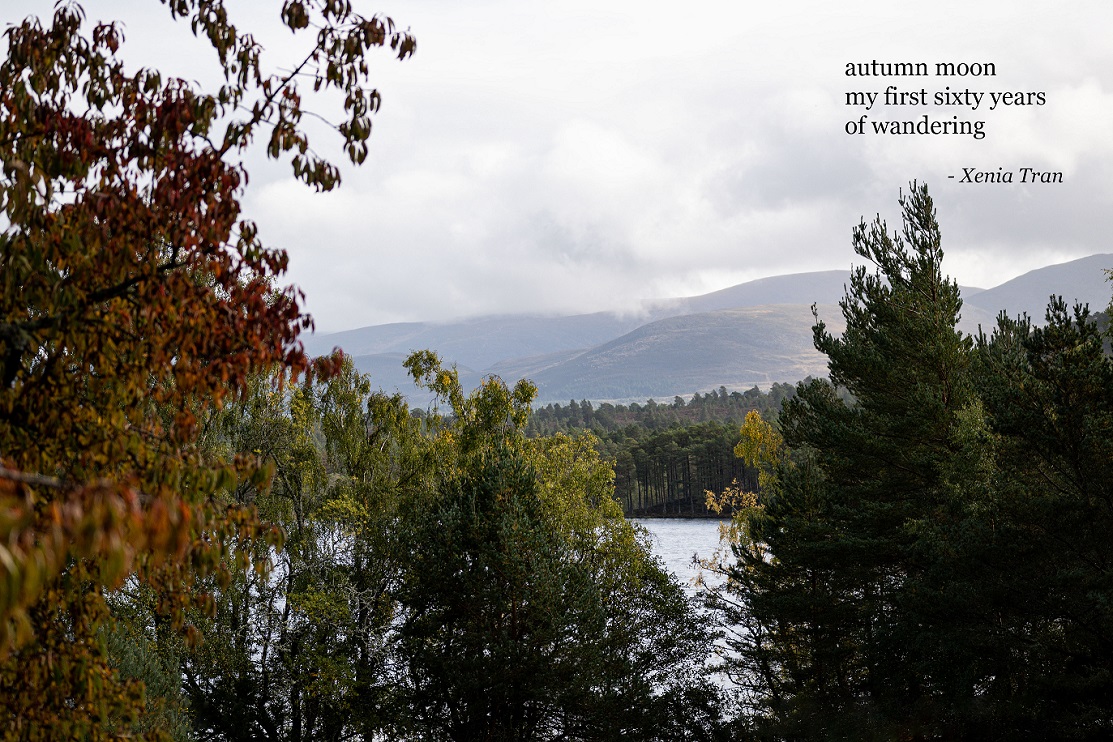 Xenia Tran is a poet, artist and photographer who lives and works in the Scottish Highlands with her husband and her adopted and fostered animals. Originally from The Netherlands, she writes haiku in Dutch and English. Her poems have been featured in haiku calendars, a haiku wheel, on television and in videos, anthologies, journals and magazines as well as in two full-length collections. A regular blogger since early 2016, she shares her images and words at https://tranature.com and https://whippetwisdom.com. She is passionate about safeguarding the natural beauty of our world for future generations and loves spending time in nature. A poem she wrote for her grandmother’s hundredth birthday and a haibun inspired by a walk in Glenmore Forest are included in an anthology that will be travelling to the moon.