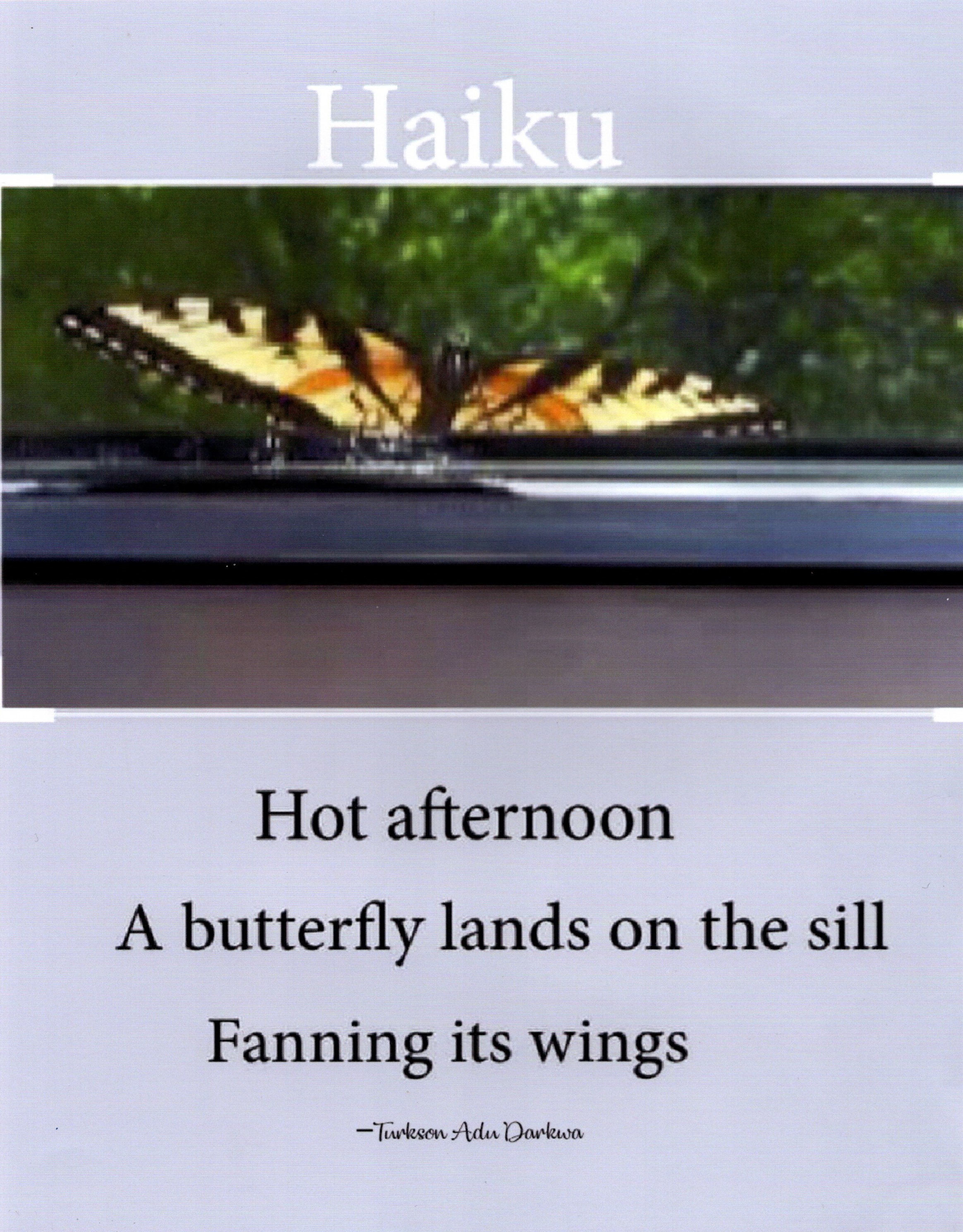 Surprisingly, one of the English haiku by Turkson Adu Darkwa was translated into Japanese tanka (短歌) poetry of 5,7,5,7,7 pattern. This is because English is different from Japanese.