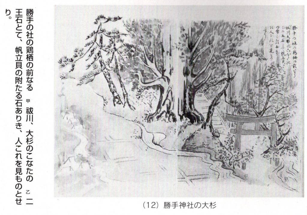The old shrine, which enshrined a replica of Katte no Kami, was located beneath a large, old cedar tree and had clear water flowing there.