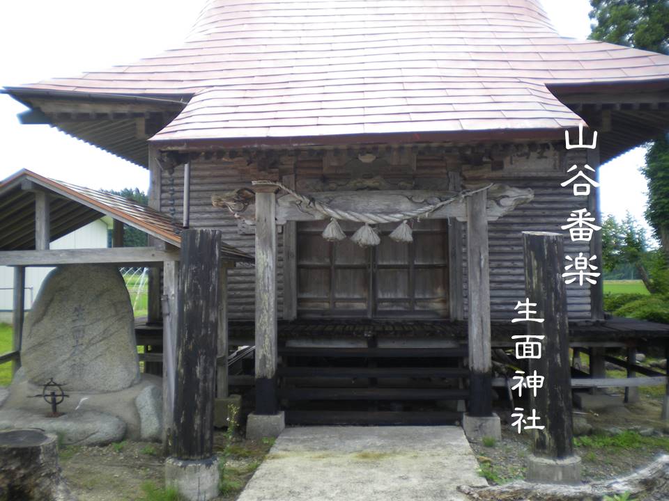 Yamaya Bangaku (山谷番楽) is a unique sacred music and dancing performed at the festival of Ikimen Shrine (生面神社) located at Noda, Yamaya, Taihei, Akita City.