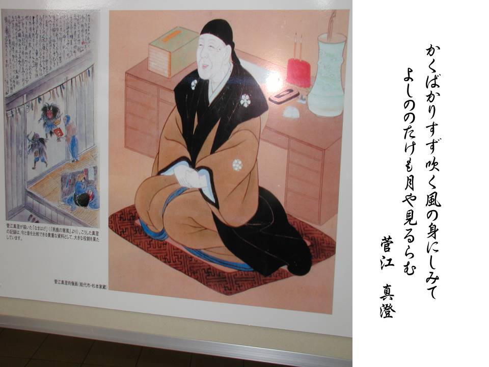 In 1792, Masumi returned to Aomori Prefecture from Matsumae and traveled around there for 9 years. In 1801, he visited Akita Prefecture again and spent 28 years there in his latter life. He passed away in Kakunodate, Semboku City in 1829. He left a large number of literary works backed by high culture.