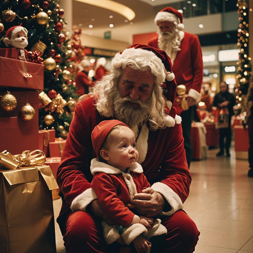 ショッピングセンターの中泣く子ありサンタの膝で幼児が一人