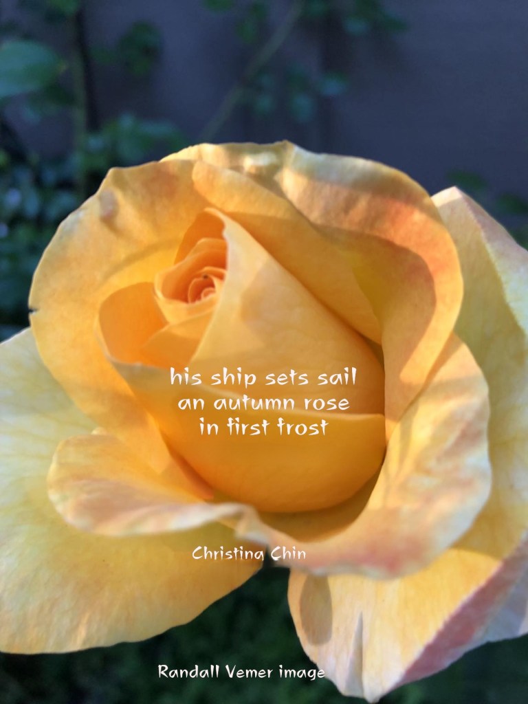 彼の船初霜の中出航す秋のバラ咲き出船を送る
