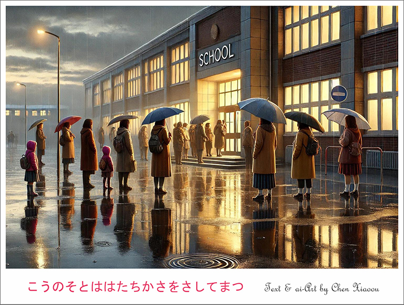 こうのそとははたちかさをさしてまつ
