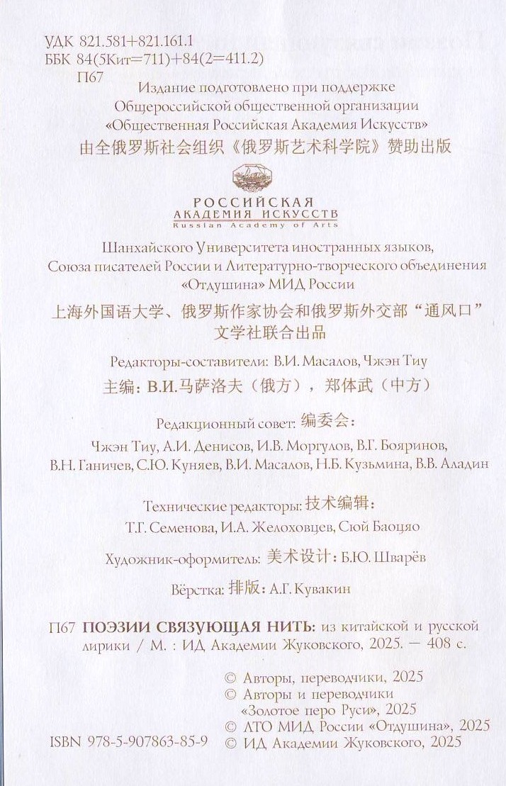 The Publishing House thanks all the editors, proofreaders, authors and translators who put all their strength and soul into these beautiful pages. And especially for the assistance provided in publishing the collection, we announce to the President of the Ryazan Community of Russia Terenin Alexander Vasilyevich and Patron Sandin Yuri Semenovich.