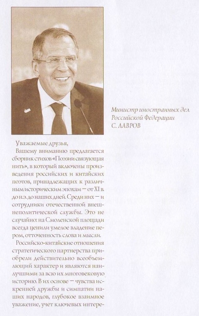 What is especially pleasant is that the welcoming words about the unique volume were given by the Minister of Foreign Affairs of Russia Sergey Viktorovich Lavrov and the Minister of Foreign Affairs of China Wang Yi.