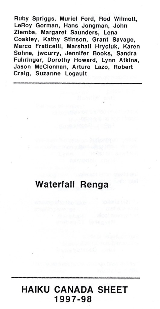 After meeting Hidenori Hiruta at the Haiku International Association (HIA) Symposium held in Tokyo on November 28, 2009, Marshall Hryciuk, President of Haiku Canada (1990-1998), kindly sent Hidenori a copy of the HAIKU CANADA SHEET (1997-98).