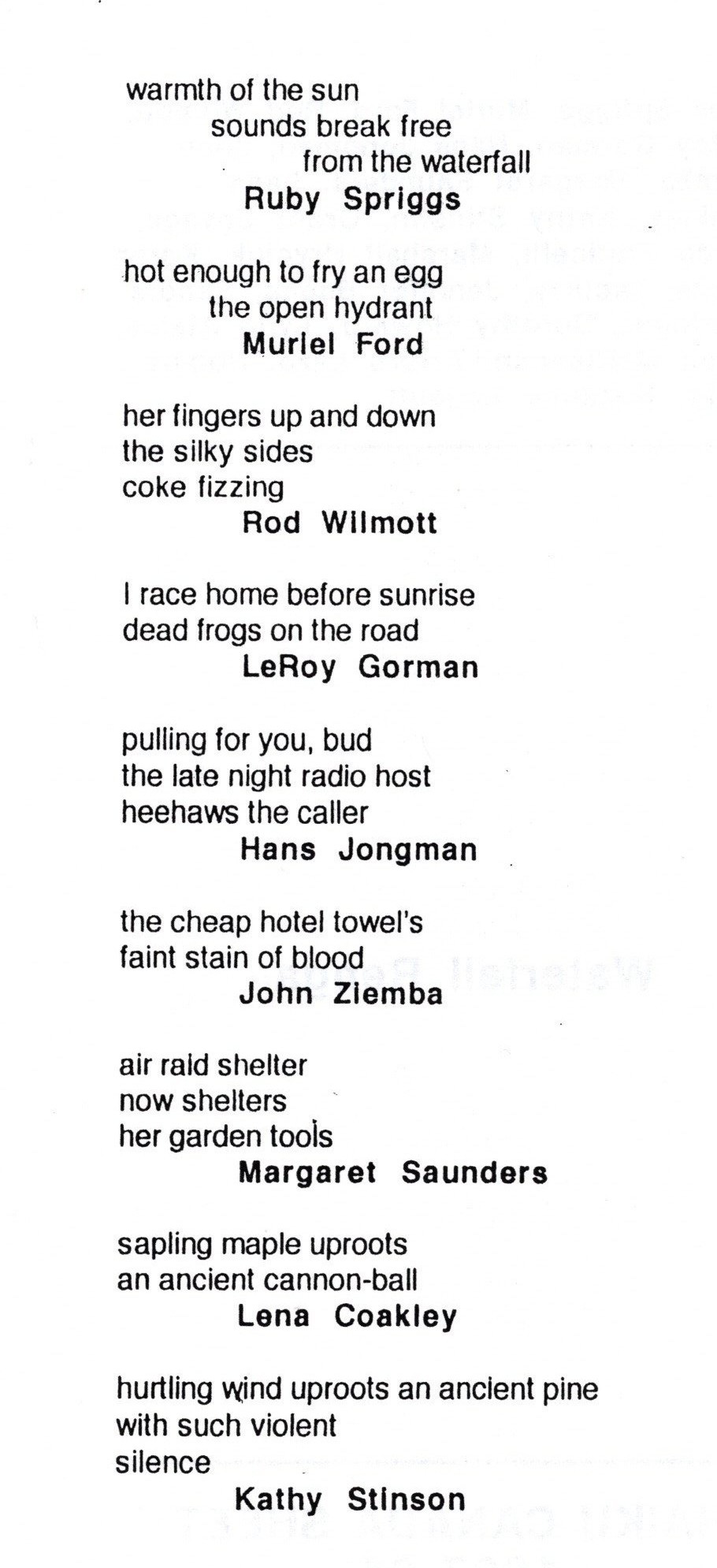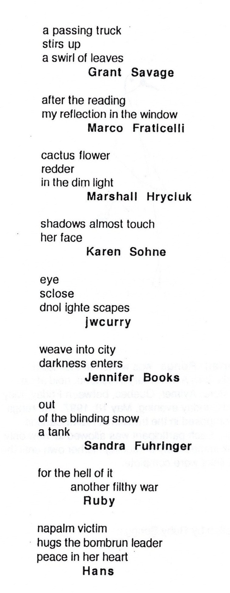 After meeting Hidenori Hiruta at the Haiku International Association (HIA) Symposium held in Tokyo on November 28, 2009, Marshall Hryciuk, President of Haiku Canada (1990-1998), kindly sent Hidenori a copy of the HAIKU CANADA SHEET (1997-98).