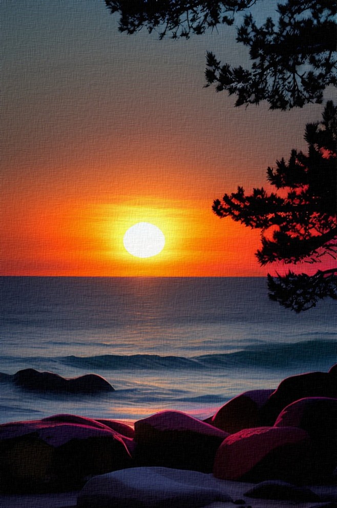 Vechernii peizazh… Solntse v more zakatnom Vot-vot potonet.