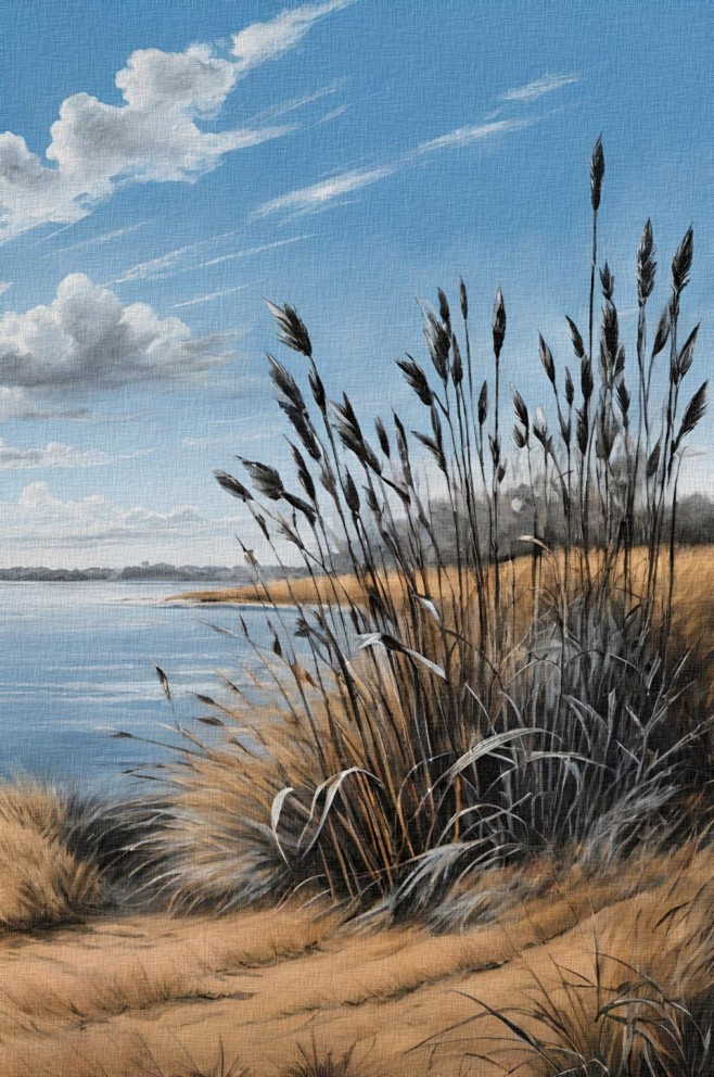 Coastal reeds stand —