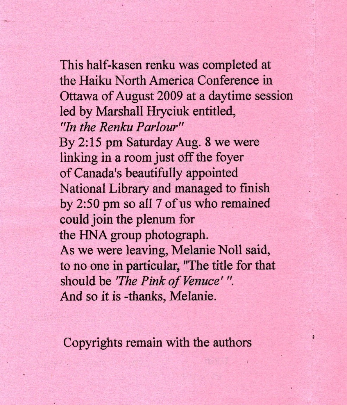 from Haiku North America Ottawa 2009