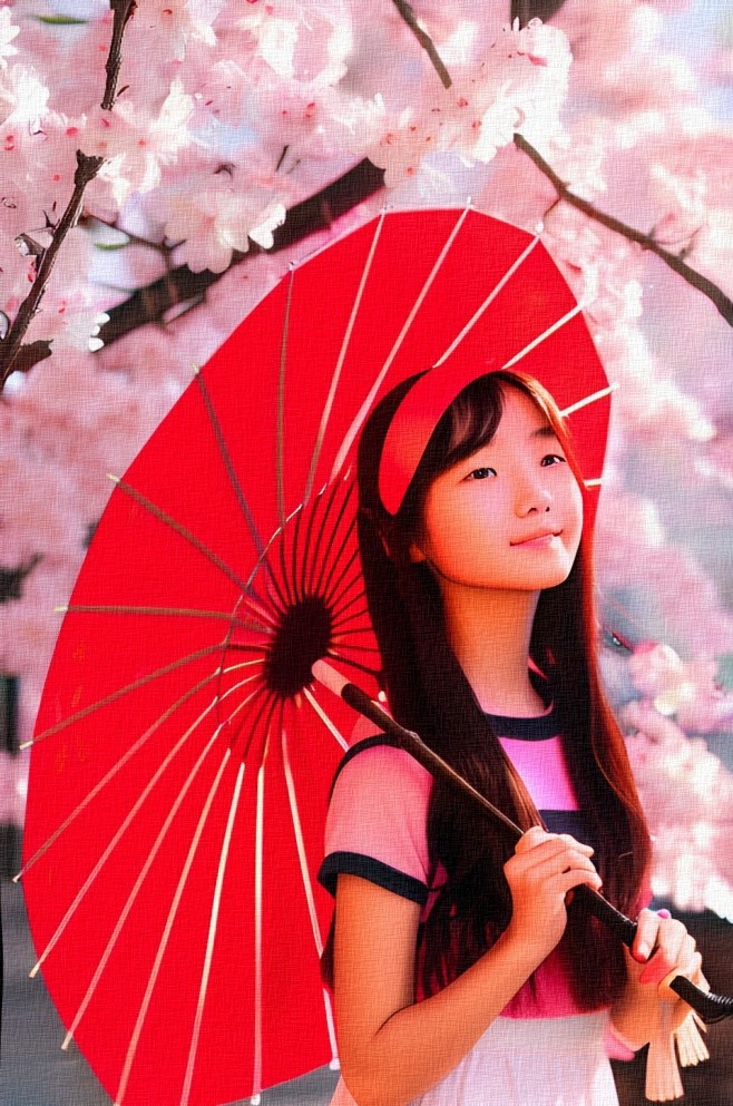 Veter vesennii… Rumyanets na schekakh eyo, Sakura v tsvetu.