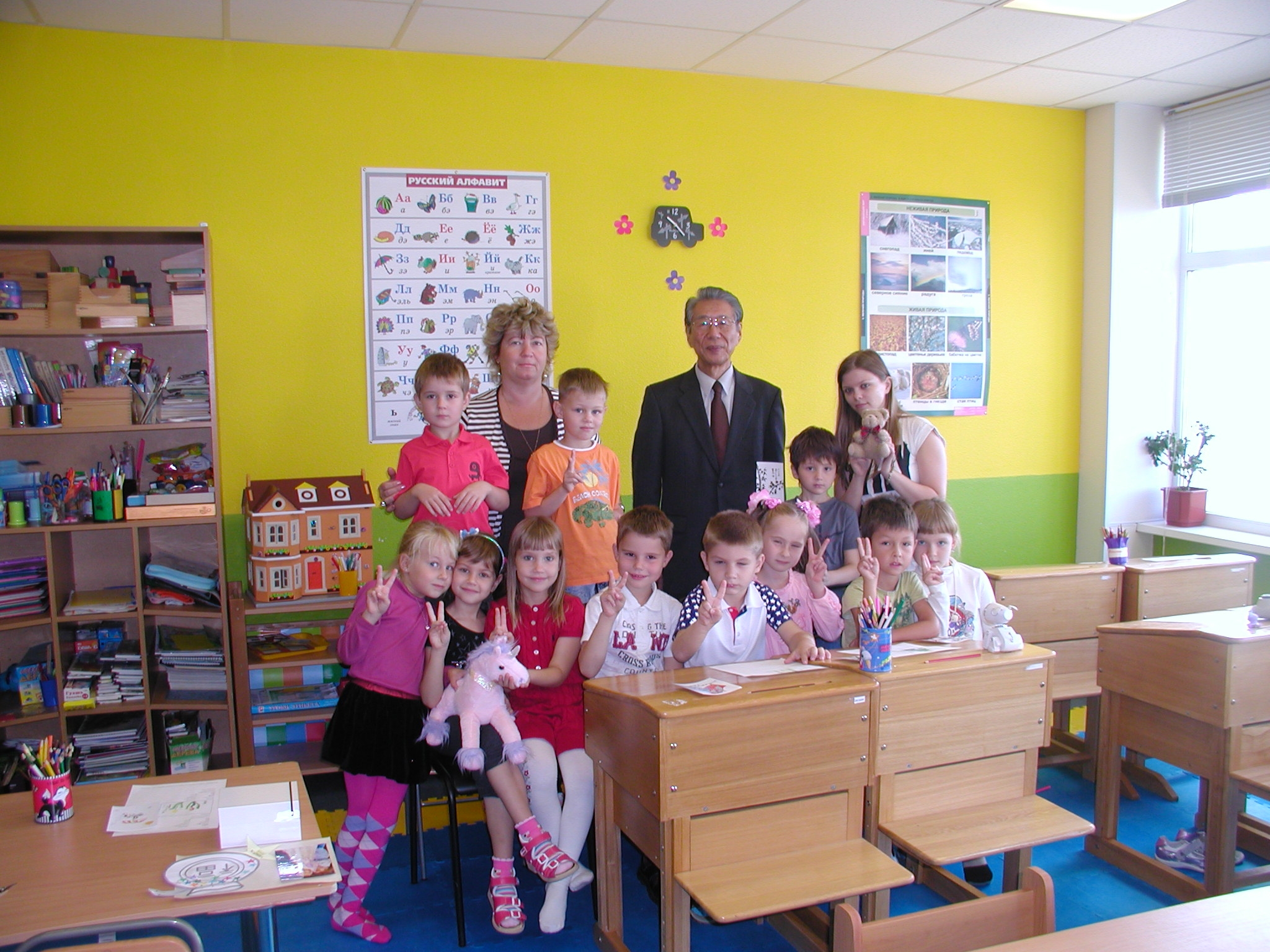 Khokina Marina, who was a teacher of Japanese language there, guided Hidenori to the school. He gave haiku talk to the children and pupils who studied Japanese as their selective subject.