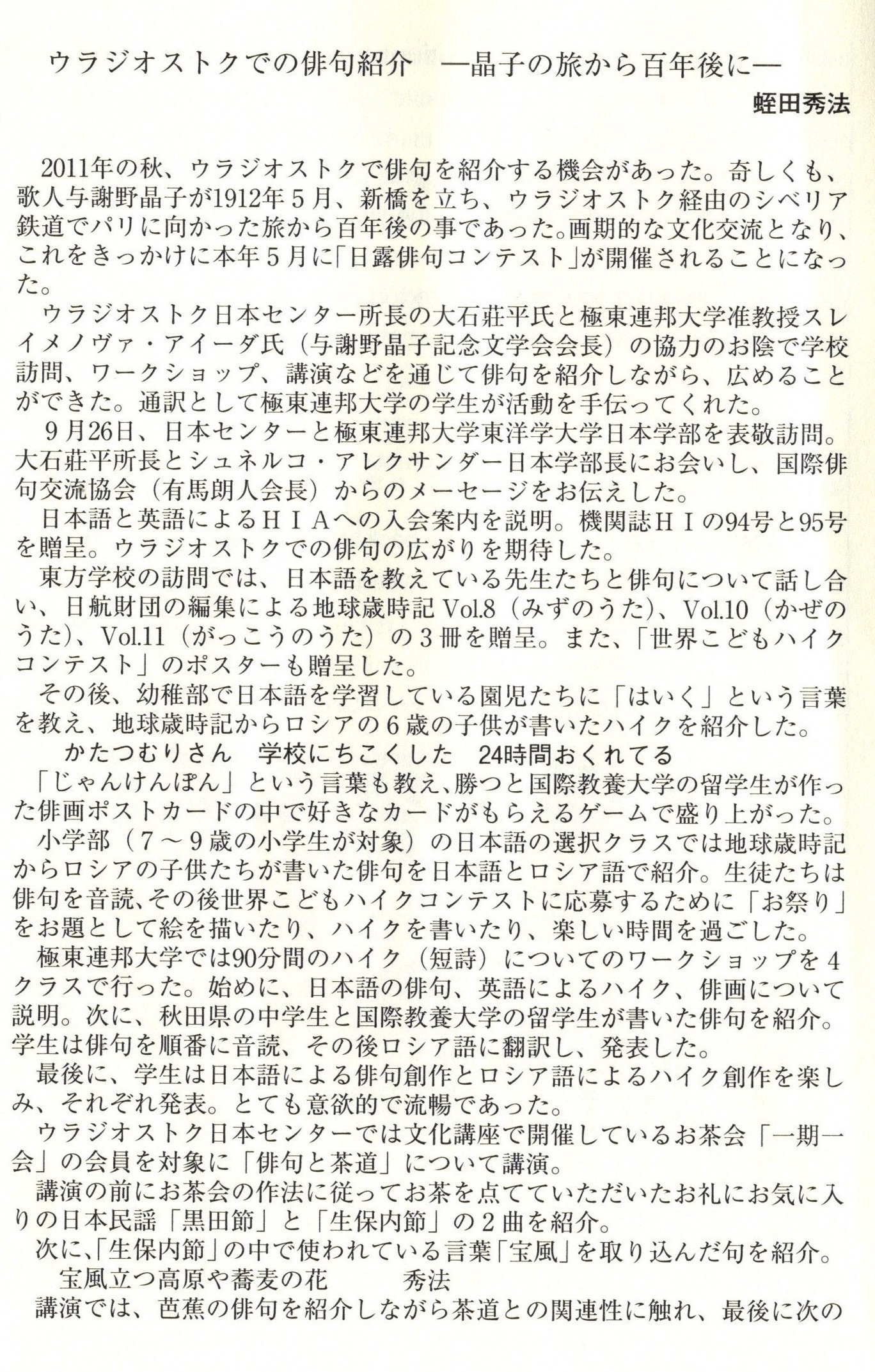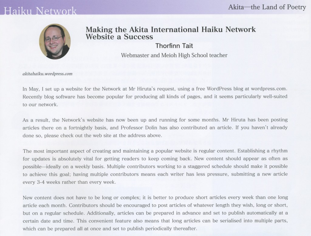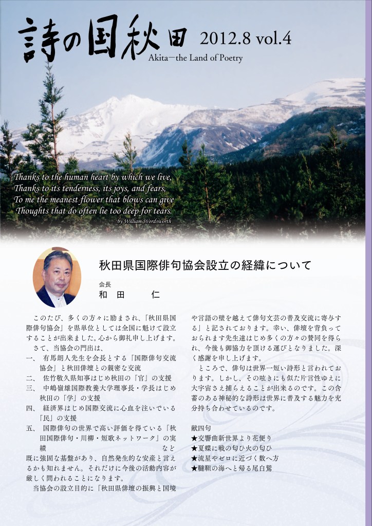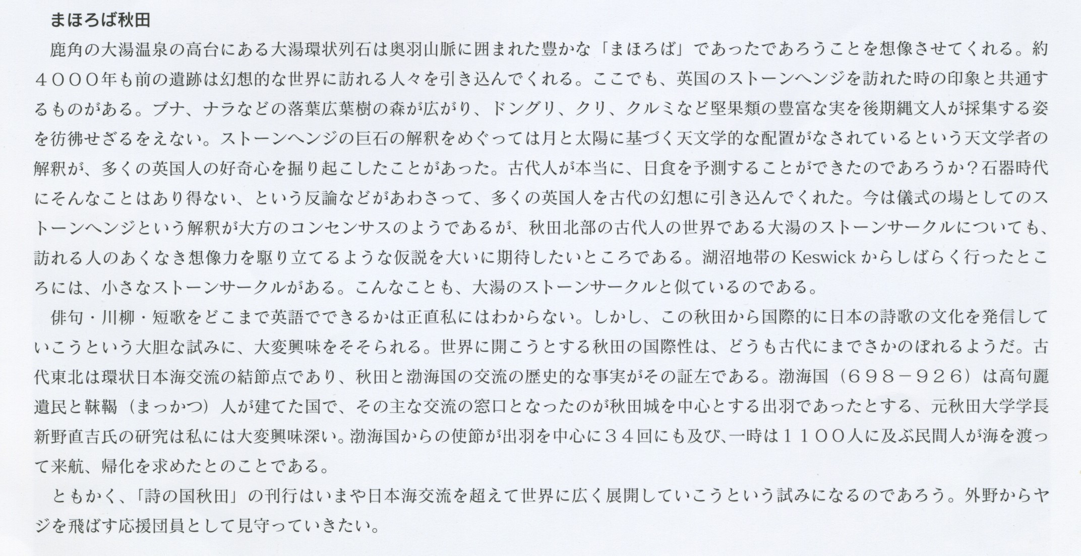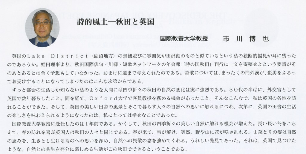 Professor Hiroya Ichikawa of Akita International University kindly contributed a manuscript to our annual newsletter, “Akita, the Land of Poetry.”