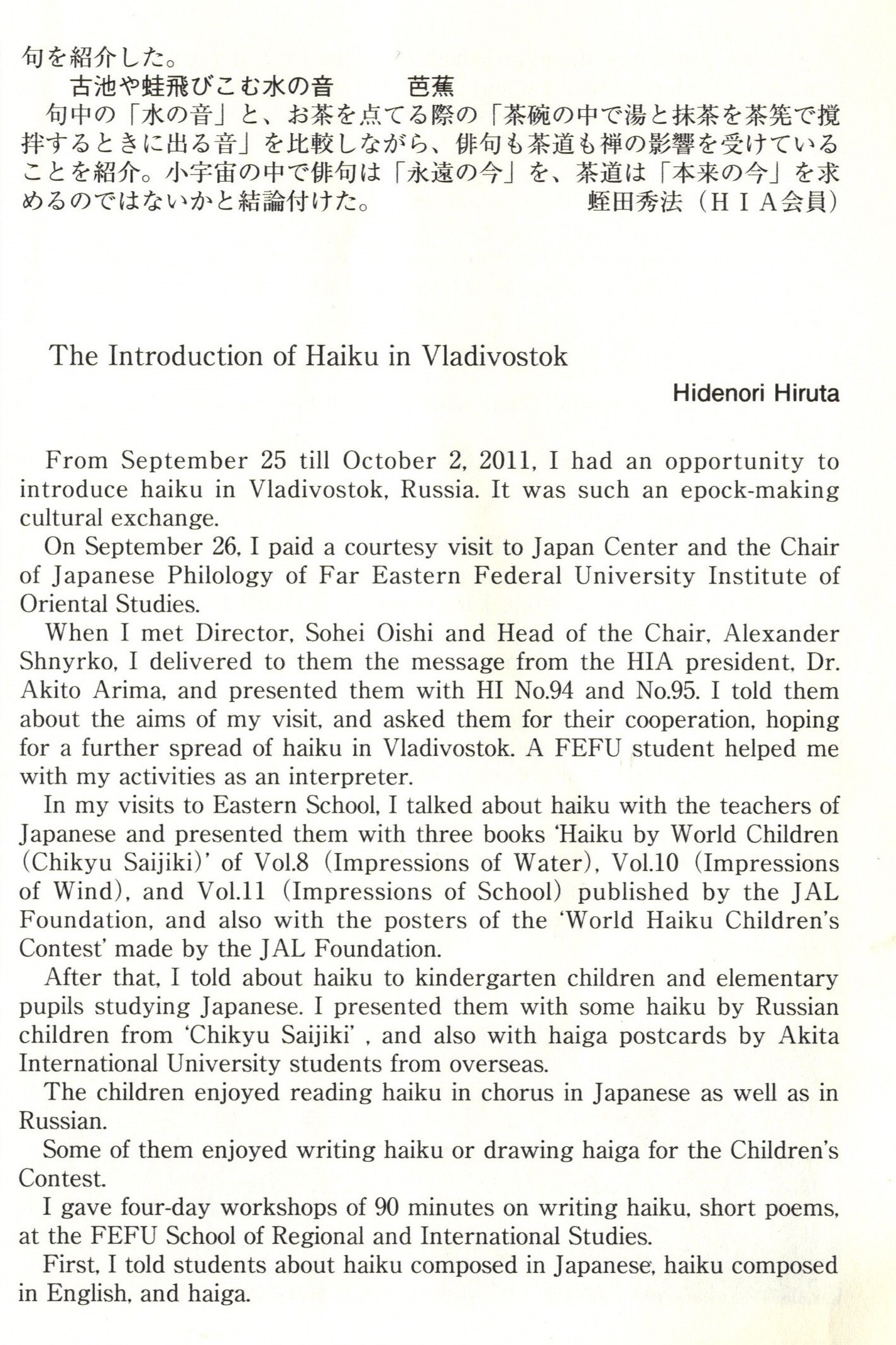 His haiku travelogue was featured in the HIA’s official publication, “HI,” in 2012 as below.