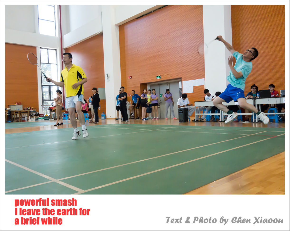 In honor of his coaches and teammates at Fujian Provincial Sports School, where he was trained, Chen Xiaoou, who has been a badminton player ever since and all his life, should like to share the following English haiku with all the haiku lovers and badminton enthusiasts as well.